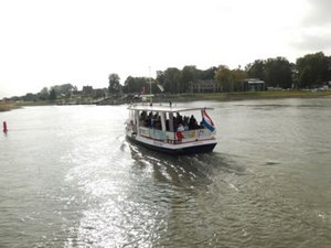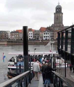 de andere zijde van de rivier Deventer zagen liggen. Met een pontje de rivier overgestoken.In de stad na een kleine tien minuten