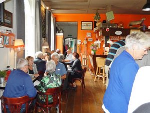 Na het bezoek gaan we naar het een stukje verderop gelegen Grand café Soestdijk om een uurtje te borrelen. Dan rijden we terug