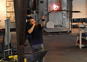Eenmaal binnen kunnen we de kunst van het glasblazen zien.
