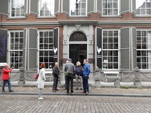 Daar staan vijf stadsgidsen op ons te wachten. Met ongeveer twaalf personen per groep trekken we Dordrecht in.
