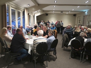 In het museum drinken we nog een borrel. Om vijf uur rijden we via de A7 en de Afsluit-dijk terug naar de Golfbaan in Middenbeemster voor ons diner. We komen om halfzeven aan. Deze avond zijn Erny van de Kleut en Geert Heikens onze gasten.