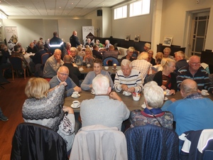 Even voor tien uur komen we aan bij het museum. In het restaurant staan koffie en gebak al klaar. Ieder is in de gelegenheid het museum te bezoeken en even te genieten op het winderige uitzichtpunt. |